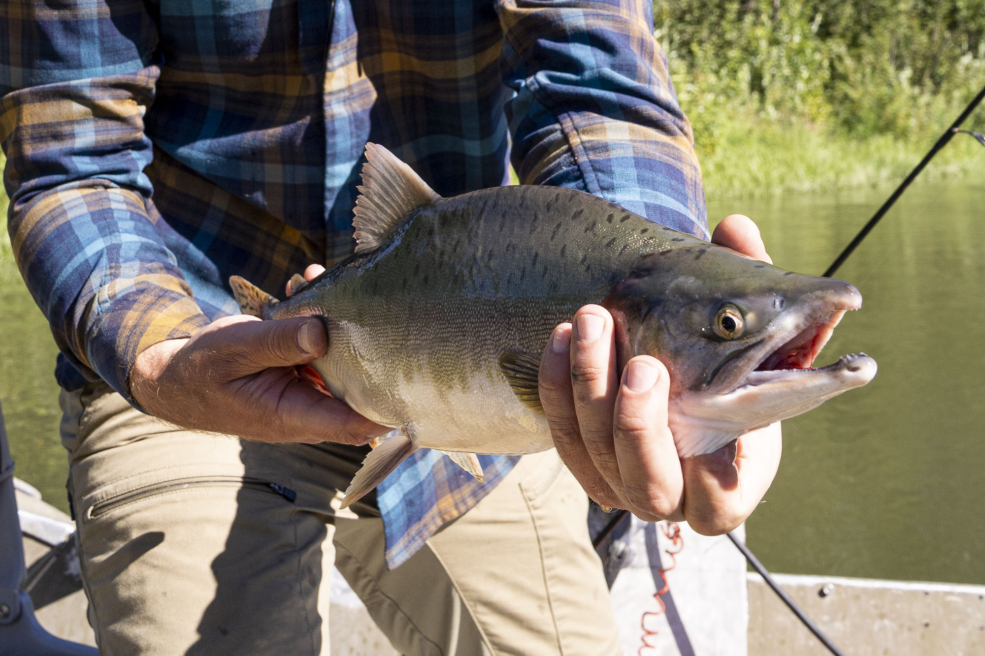 Layered on top of that are the trout and grayling that make Lake Creek quietly famous. Early in the season they chase smolt and streamers; later they slide in behind spawning salmon and gorge on eggs and flesh until they are thick, heavy, and more than capable of breaking light gear. Add in angry Chum, acrobatic Coho, even-year Pink mayhem, and a few toothy Pike in the side channels, and there is always something worth getting up early for.